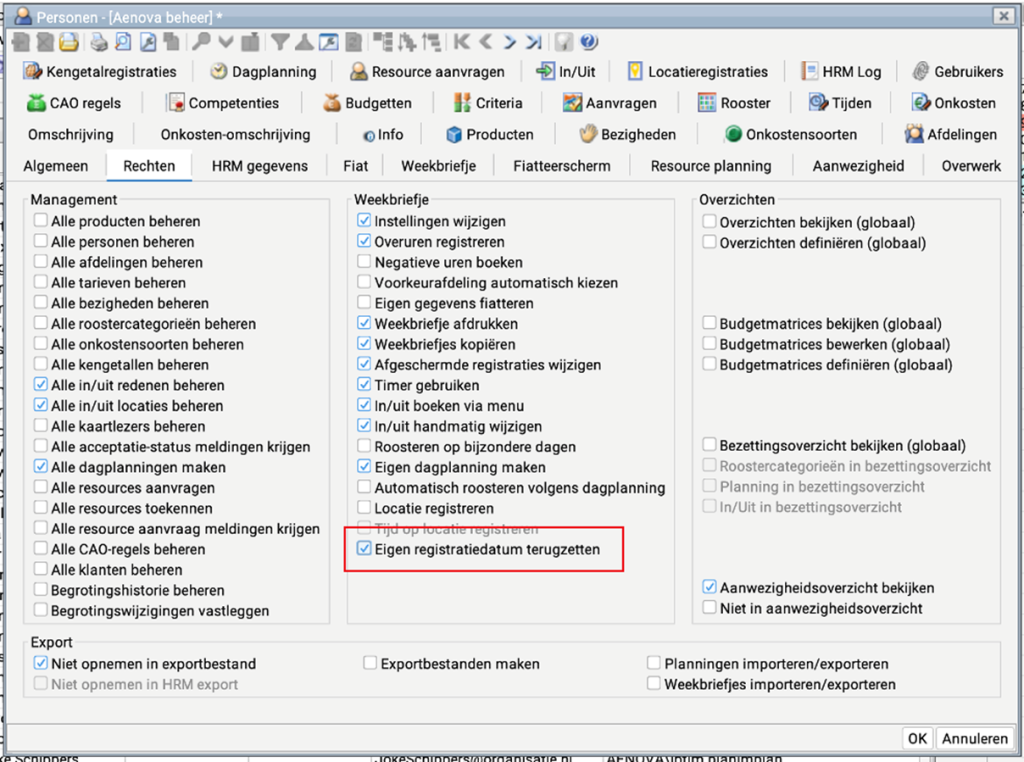 Locatie: Management → Personen → Rechten → Weekbriefje