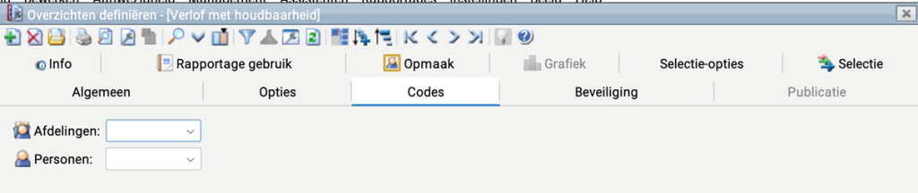In de definitie van het overzicht kun je op het tabblad codes de gewenste velden toevoegen.